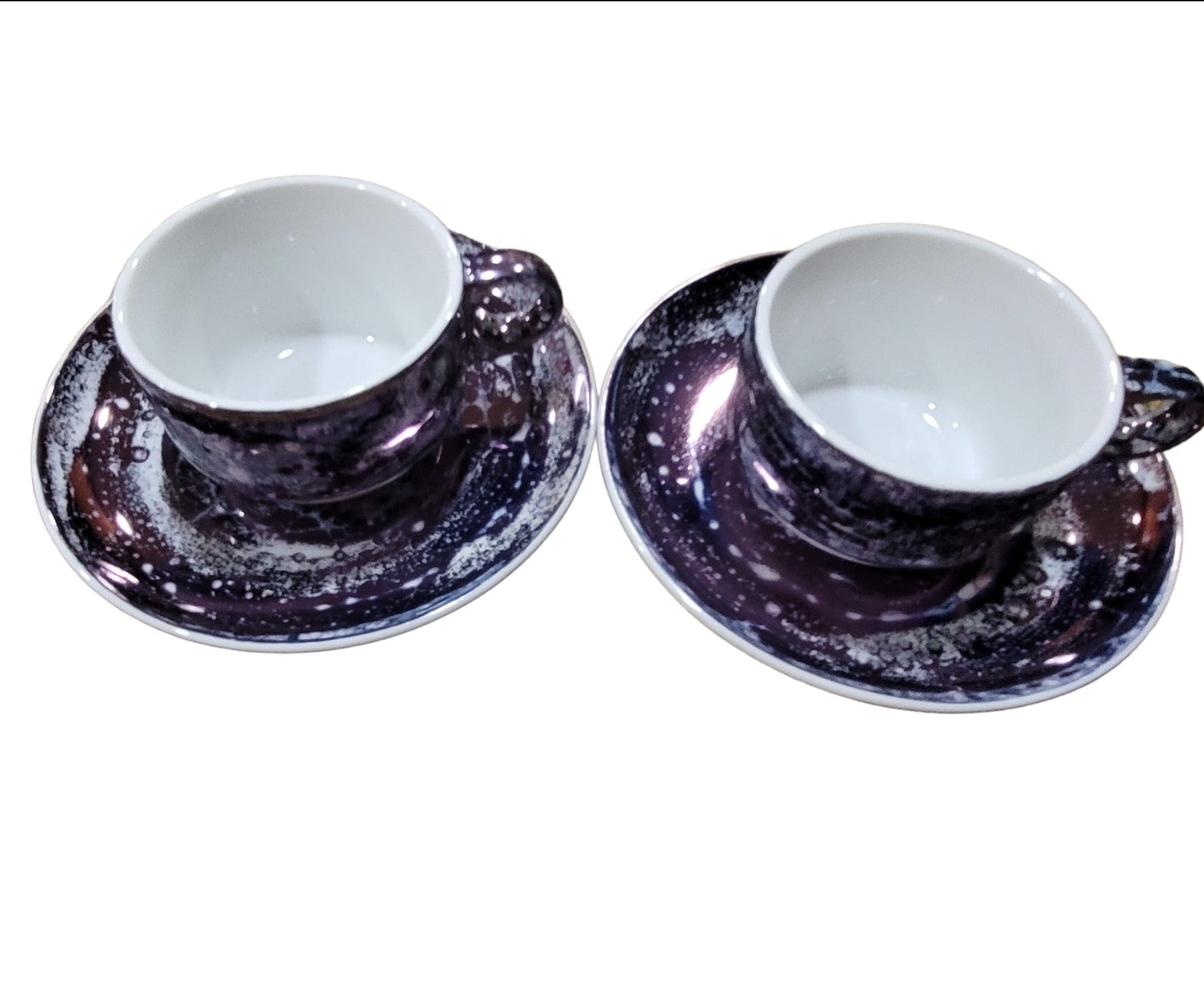 Hand Painted set of 2 with Luster Design 6oz. Cup and saucer on Fine Porcelain piece.