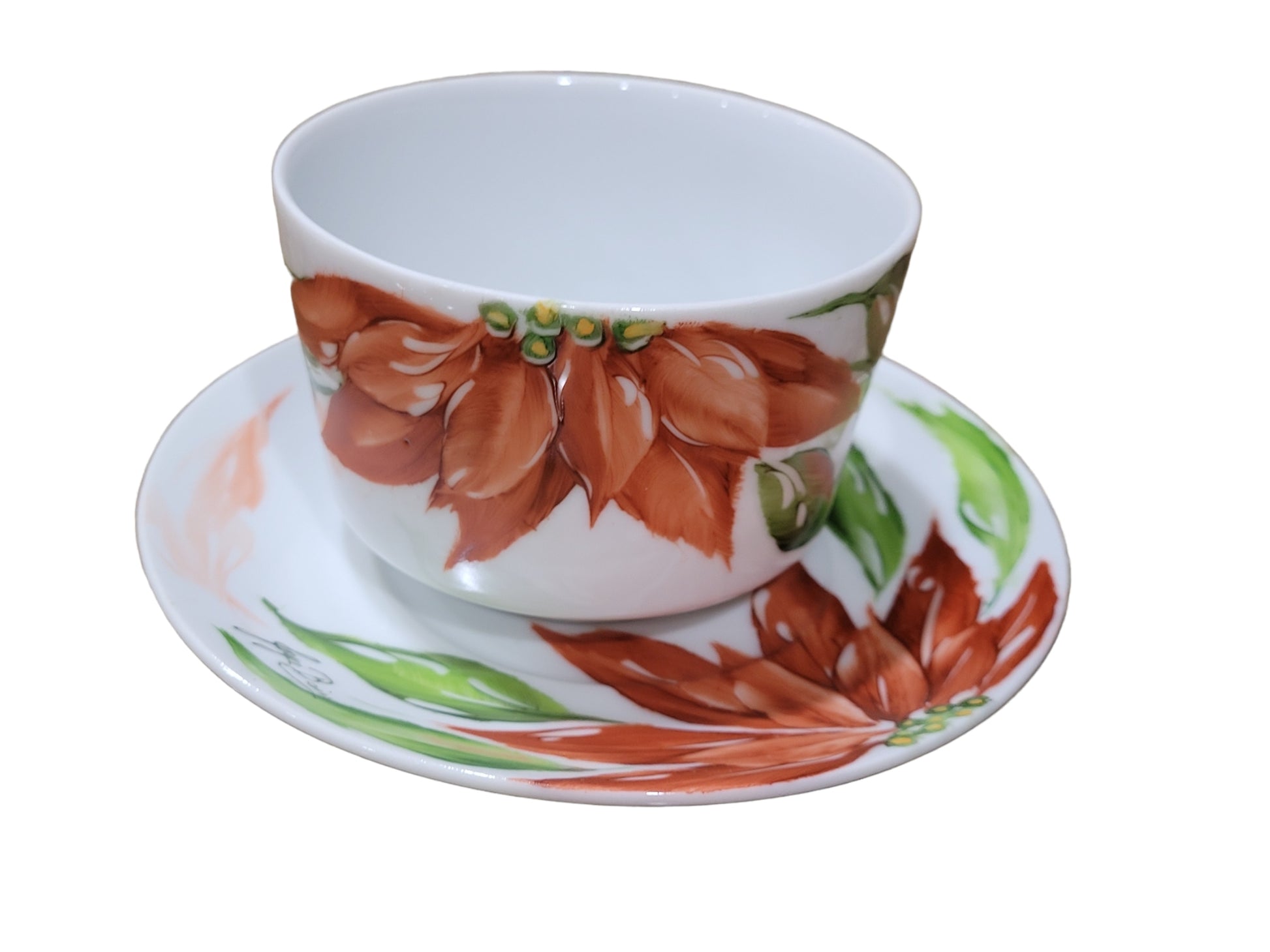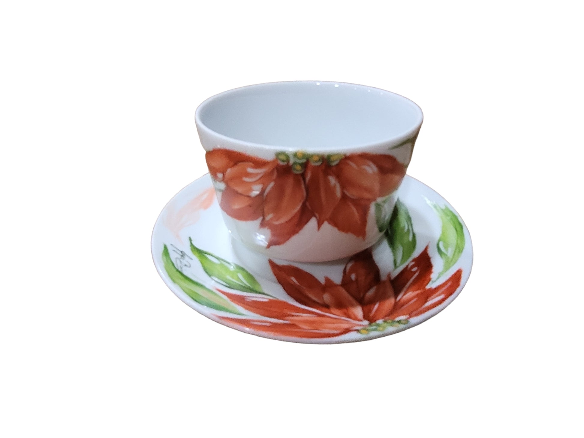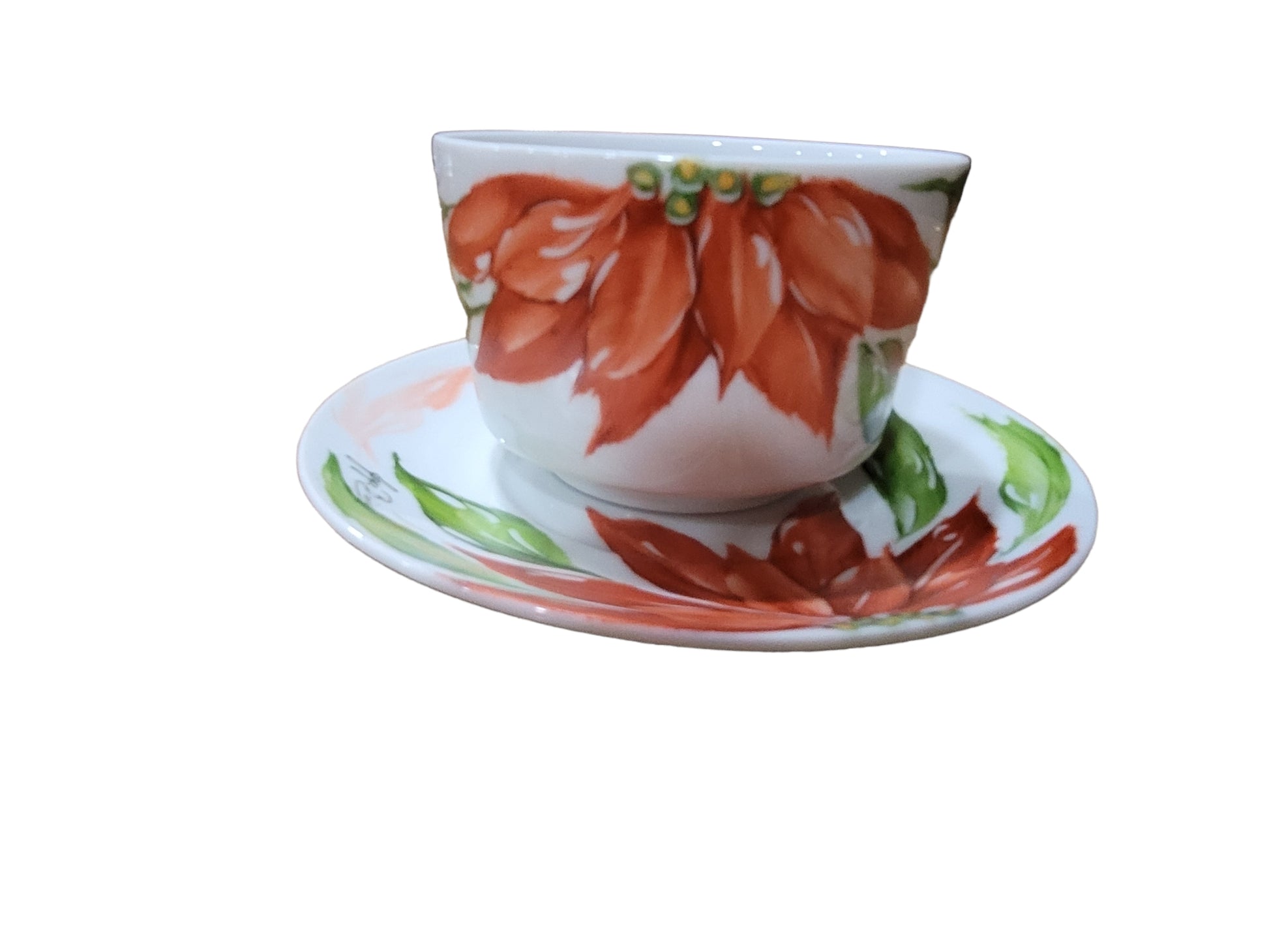 Hand Painted tea cup with Poinsettia Flower. A perfect gift for the Christmas Season