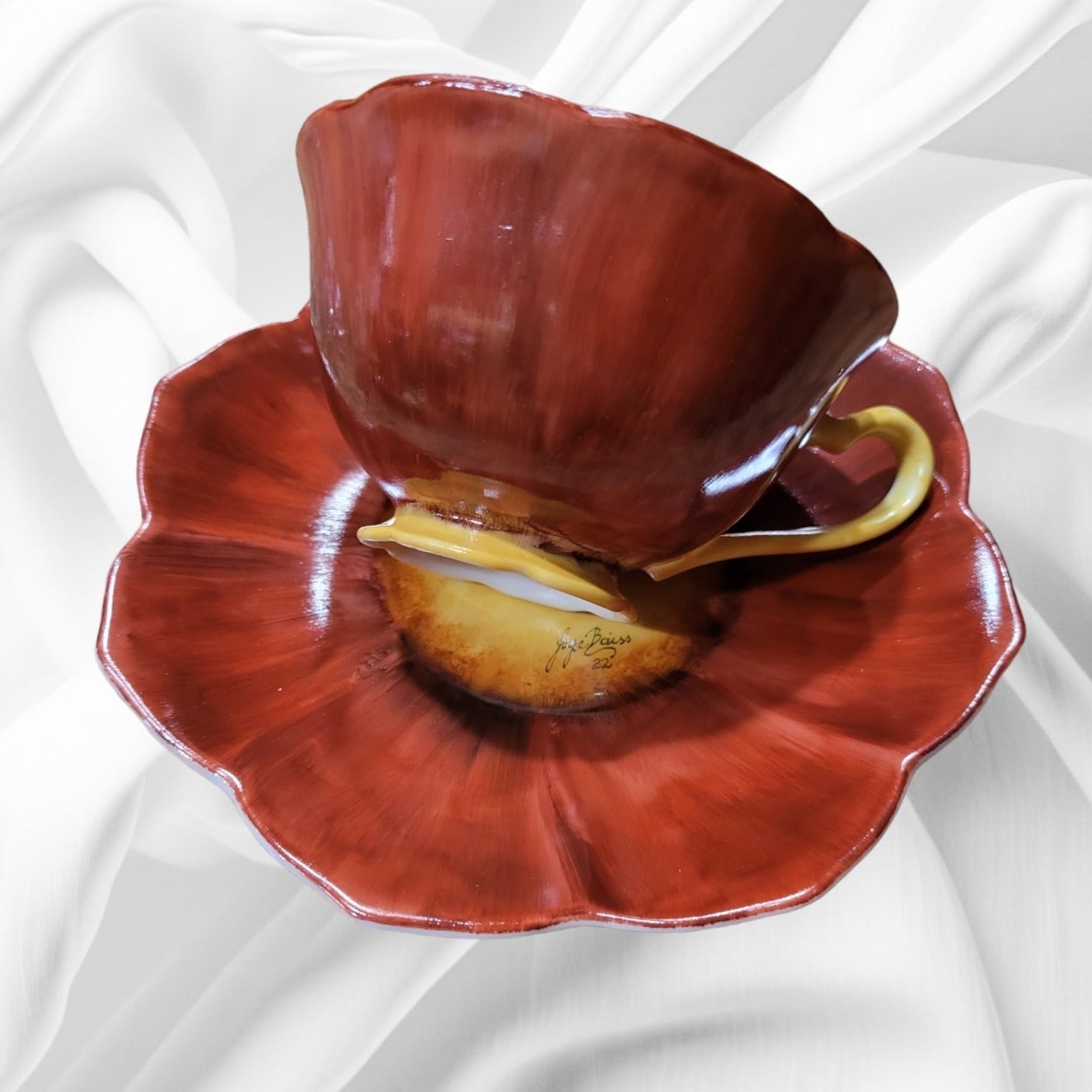 Red Poppy hand painted on a fine piece of porcelain. 6oz. cup.