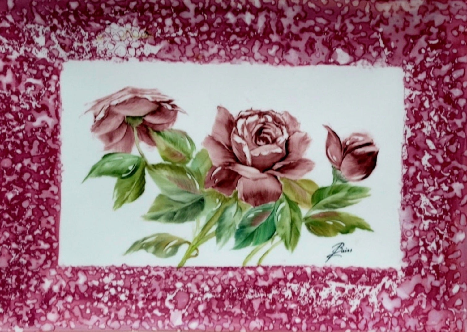 10 inches Plate Handpainted Pink Roses on a contemporary Porcelain Piece.