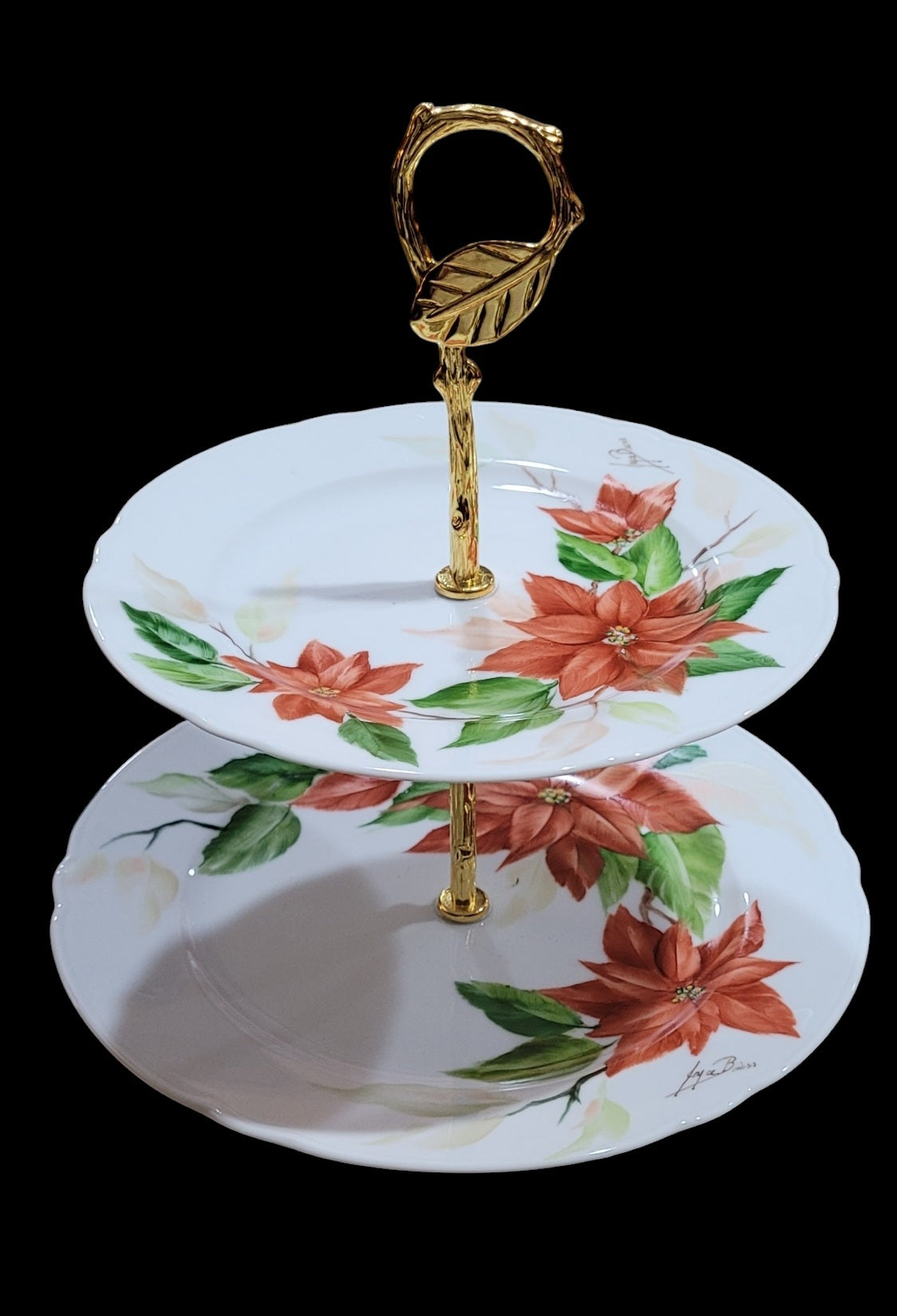 Hand painted porcelain 8 in. Plate and 7 in plate, with Poinsettias