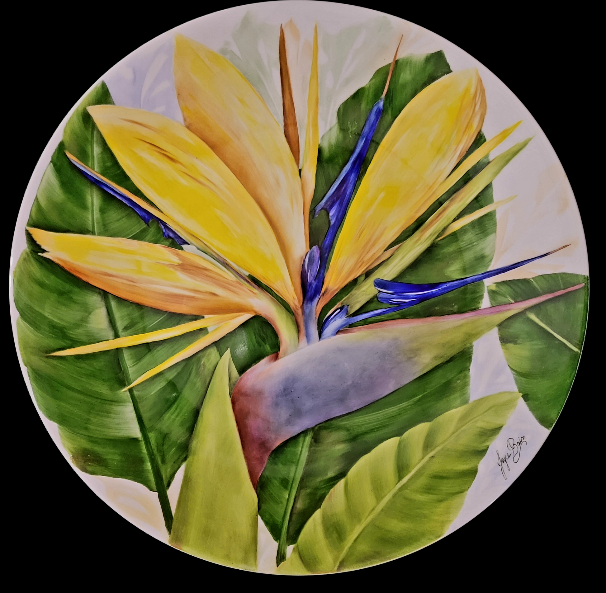 Hand Painted Bird of the Paradise Flower on a 18 inches round plate.